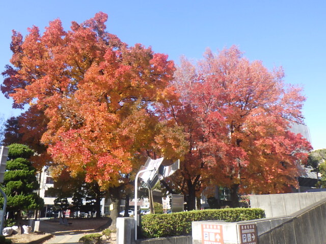 寒さもひとしお身にしみる頃となりましたが、タイワンフウの鮮やかな紅葉が訪れた人の目を楽しませています。