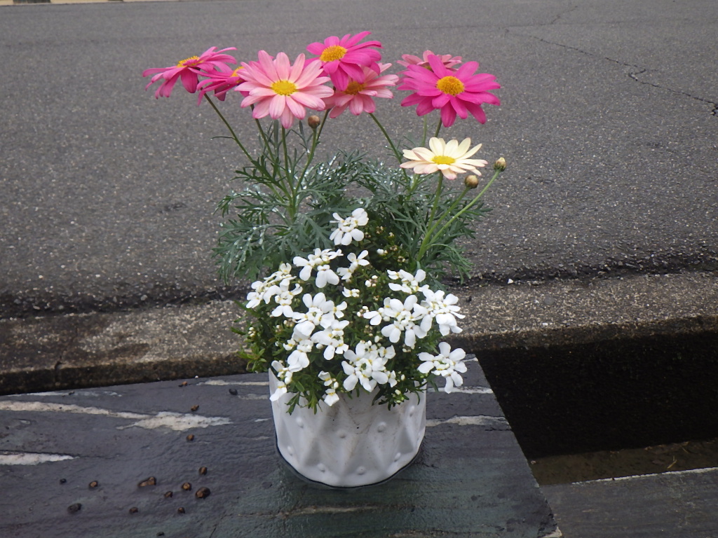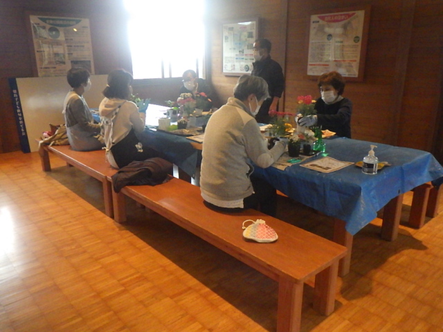 令和3年3月6日(土)、阿波史跡公園管理棟にて春の園芸教室が開催されました。受講生の皆様にはマーガレットシンプリーコーラルとイベリスを鉢に寄せ植えをしていただき、その後、オアシス(円形)にテーブルヤシと初雪カズラを使いこけ玉を作っていただきました。