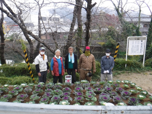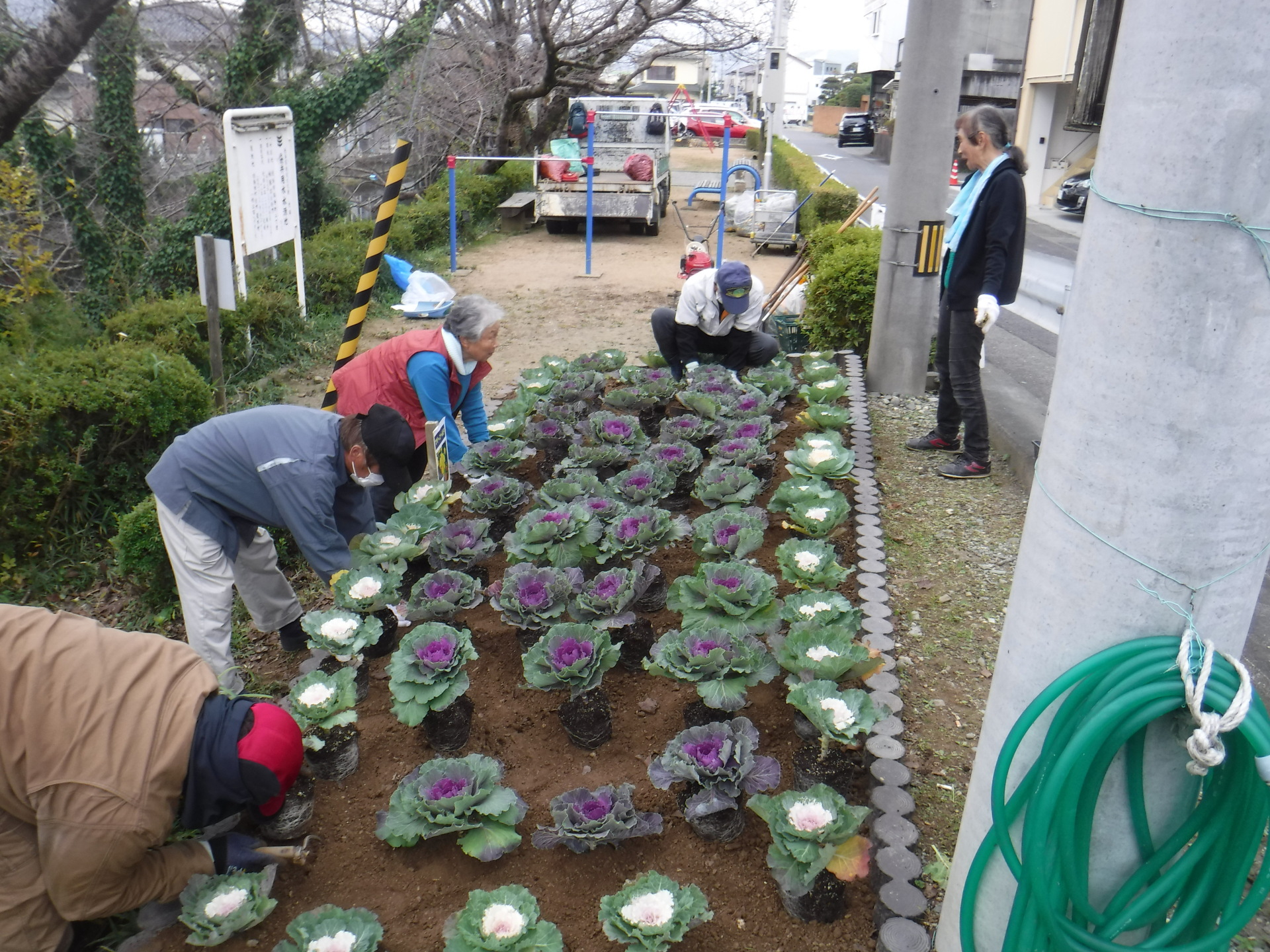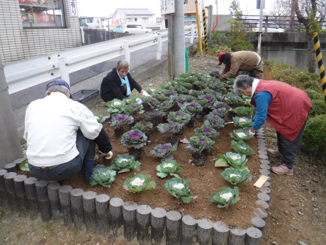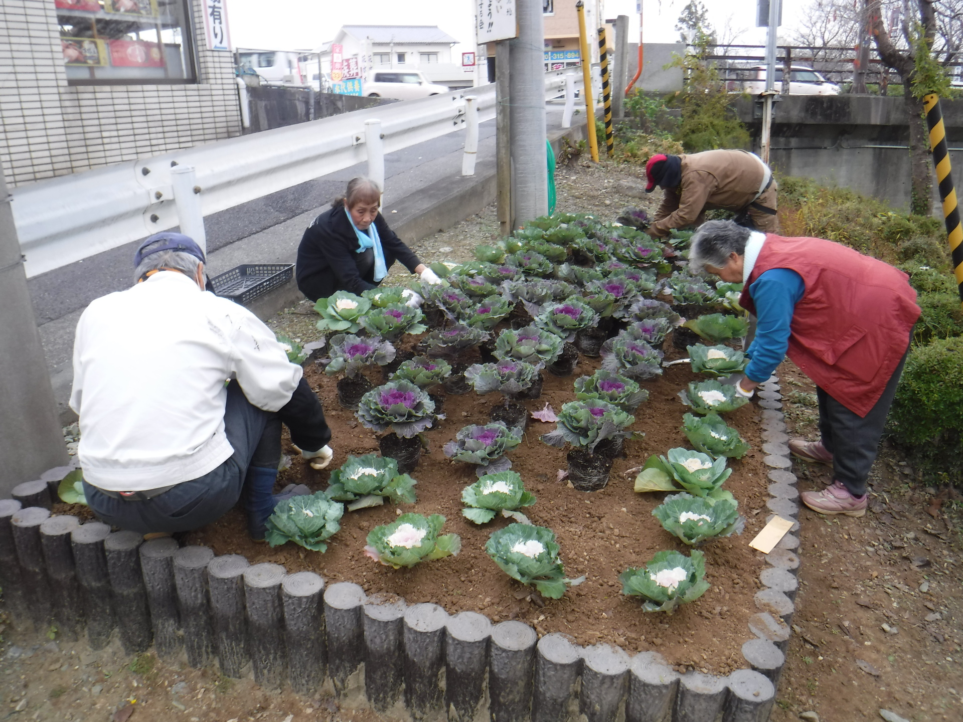 街はクリスマスの飾り付け一色になりましたが、この度、袋井公園の花壇を「袋井公園を美しくする会」の皆様と一緒に、紅白の葉ボタンに植え替えました。葉ボタンは、鉢植えでも切り花でも出回り、色が優しくどんな花とも相性が良いのが特徴です。