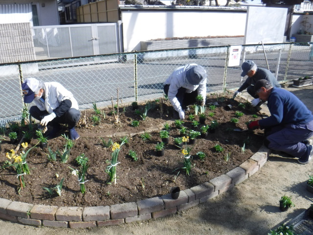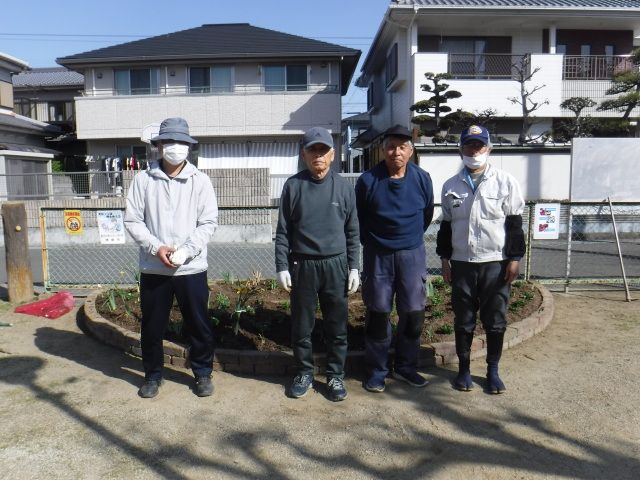 花笑みの季節を迎え、心穏やかな日々となりました。3月16日(水)庄町南公園において、地元の「光陽台町内会」の皆様と協働で花壇に春の花を植えました。花の種類は、なでしこ、ノースポール、オステオスペルマムの花合わせて80本植栽しました。