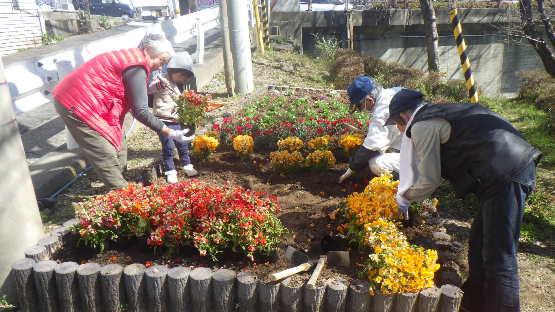 花の便りも聞かれるようになりましたが、3月27日(水)「袋井公園を美しくする会」の皆様と、袋井公園の花を、ネメシア、ノースポール、カーネーション、アリッサムに植え替えました。