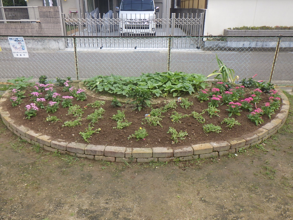 青田をわたる風もさわやかな頃となり、6月25日(火)庄町南公園の花を「光陽台町内会」の皆様と一緒に、ペンタス、ポーチュラカの花に植え替えました。ペンタスの花は、暑さにも強く途切れることなく花をさかせる植物で、ペンタスの花言葉は「希望が叶う」、「願い事」です。また、ポーチュラカの花は、暑さや乾燥に非常に強い植物で、日当たりの悪い場所や天候のよくない日は花は咲きません。ポーチュラカの花言葉は、「いつも元気」、「無邪気」です。