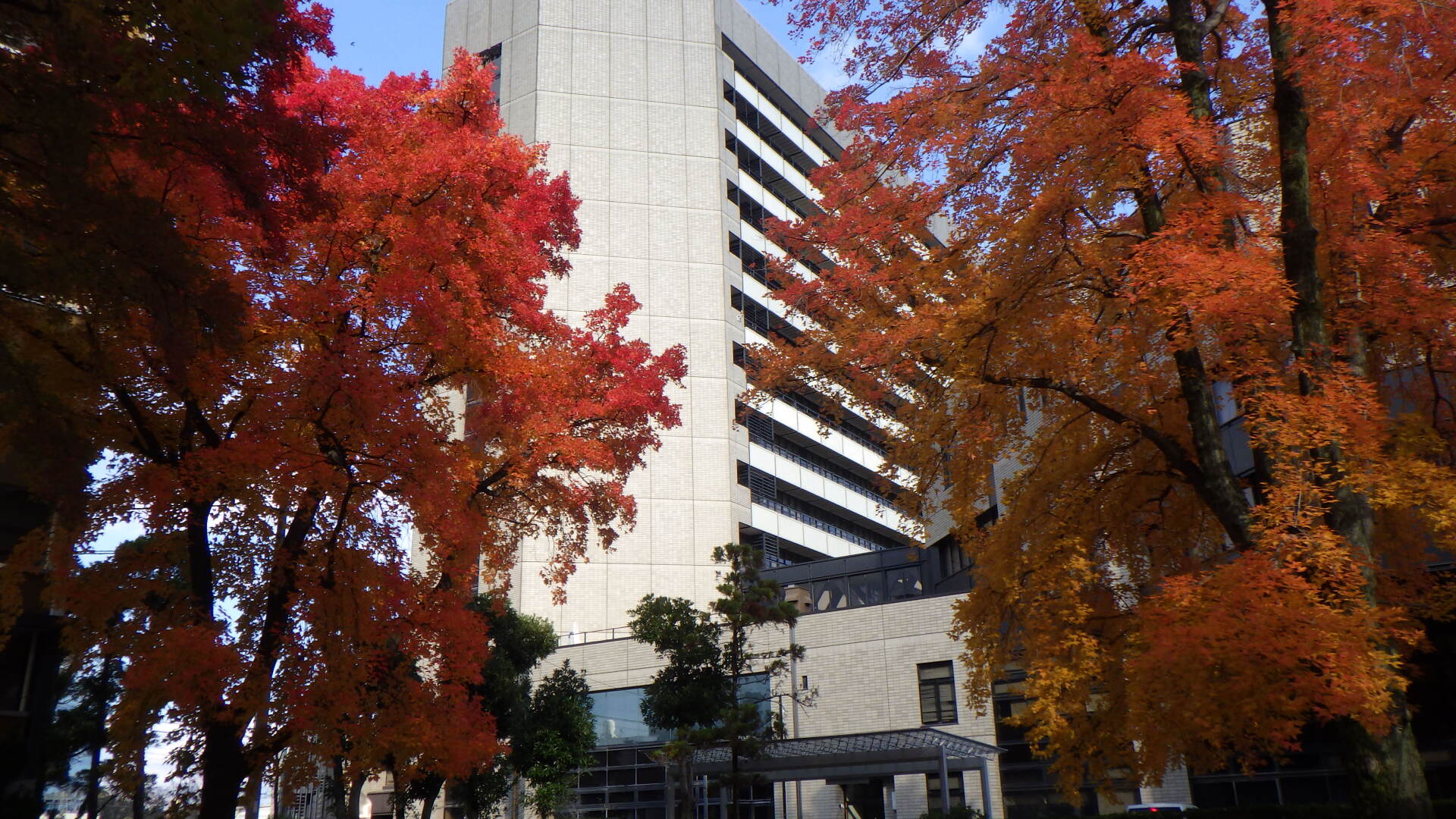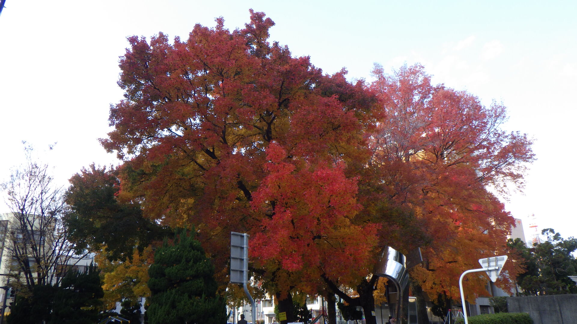 寒さも本格的になってまいりましたが、幸町公園ではタイワンフウの鮮やかな紅葉に訪れた人の目を楽しませています。