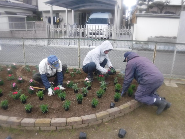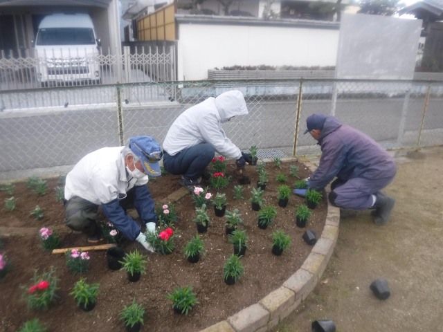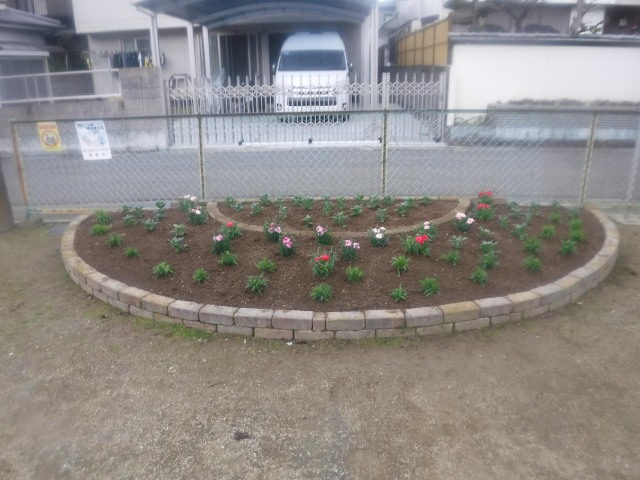 桜のつぼみが膨らむ季節となり、3月19日(水)、「光陽台町内会」の皆様と、庄町南公園の花を、なでしこ25本、ストック40本、カーネーション15本に植え替えました。