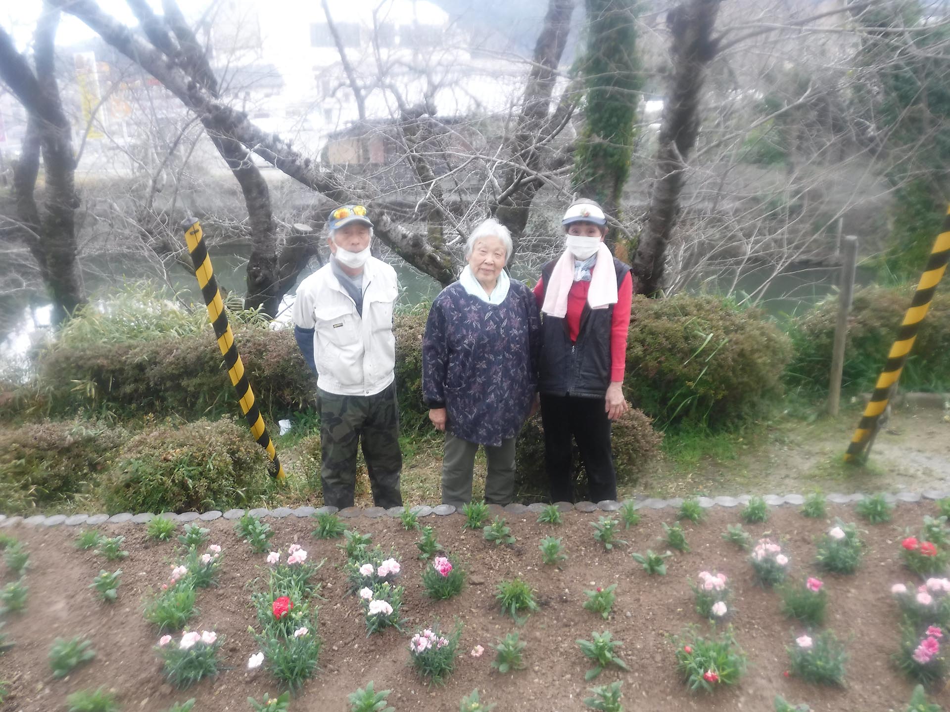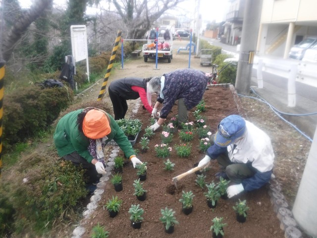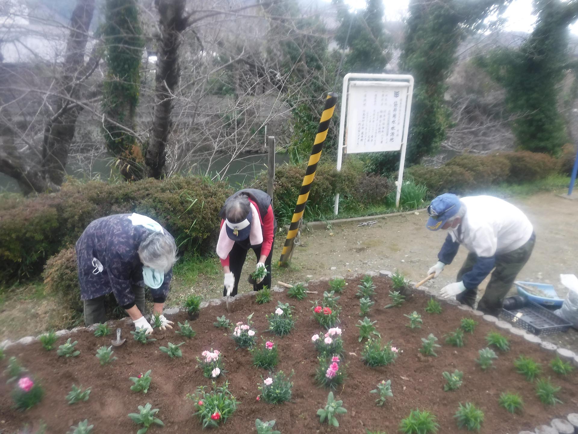 桜咲く季節が目前となり3月19日(水)、「袋井公園を美しくする会」の皆様と、袋井公園の花を、なでしこ50本、ストック50本、カーネーション20本に植え替えました。