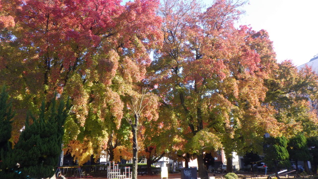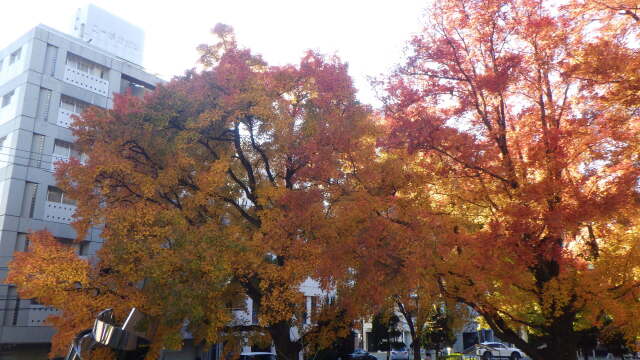 慌ただしい季節でのんびり過ごしたいと思いますが、鮮やかに色づいている幸町公園のタイワンフウ7本の紅葉を見に足を運んではいかがでしょうか。