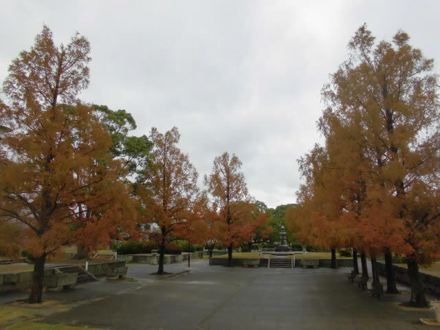 現在、徳島市の助任緑地のメタセコイアが赤褐色に紅葉しています。助任緑地にお越しの際には、メタセコイアの紅葉をご覧下さい。