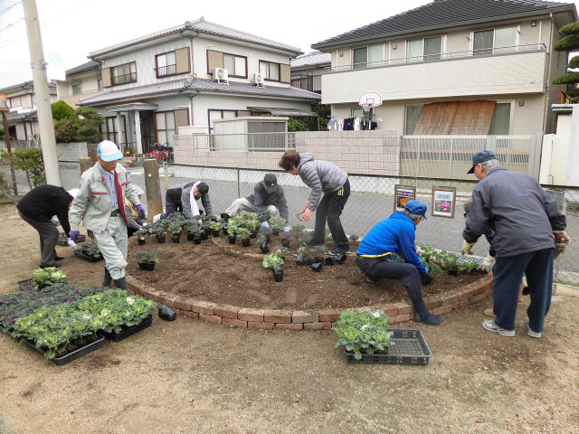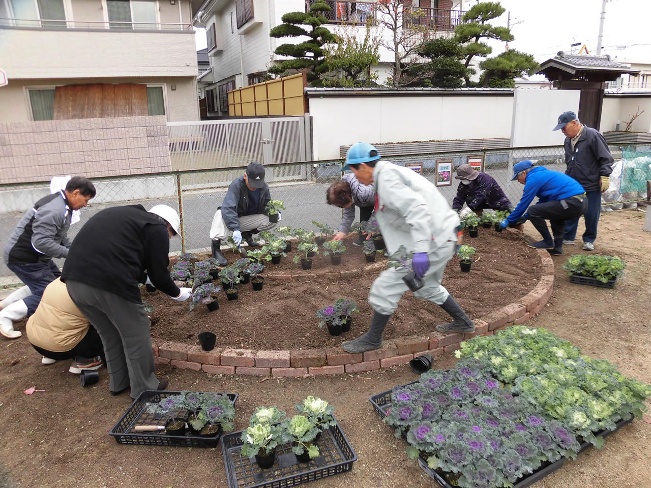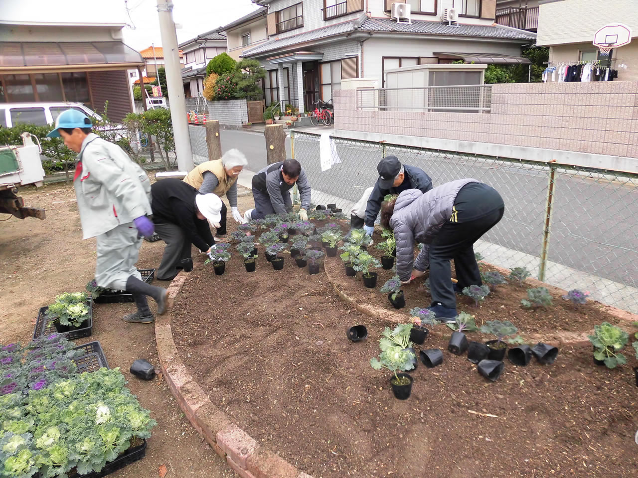 朝、夕冷え込む季節になりました。2016年の新しい年を迎えるに際し、11月25日(水)庄町南公園において地元の皆様と協働で、花壇にハボタン紅白合わせて180ポットの花を植えました。ハボタンはまだ少し小さめですが、大きく成長することを願い、地元の皆様に見て頂けるように期待しています。