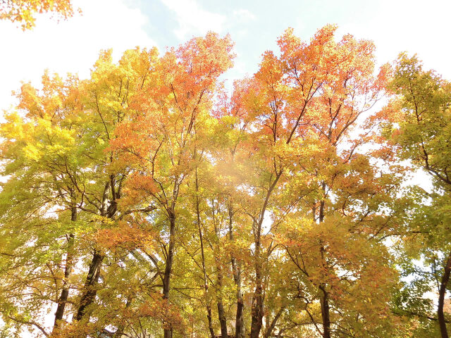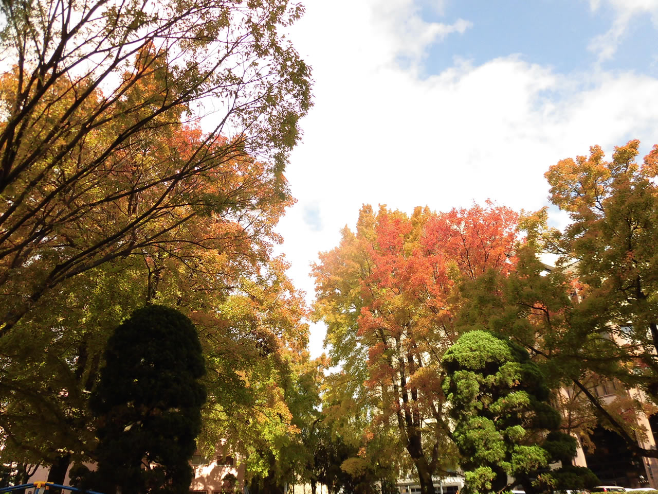 落ち葉が風に舞う季節となりました。春に新しい葉を生じていた落葉樹が、秋の低温期になると黄色から赤色に変化し、葉を落としています。紅葉を美しくいろどる代表的な樹木であるタイワンフウが紅葉時期を迎えました。枯れ葉が舞い、葉を落とした地面には落ち葉でいっぱいになり、紅いジュータンが敷き詰められているようにも見えます。