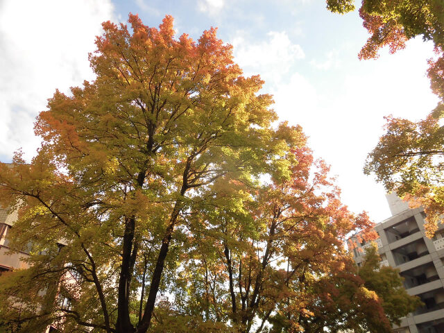 徳島市役所西側の幸町公園でもタイワンフウの紅葉時期が訪れています。