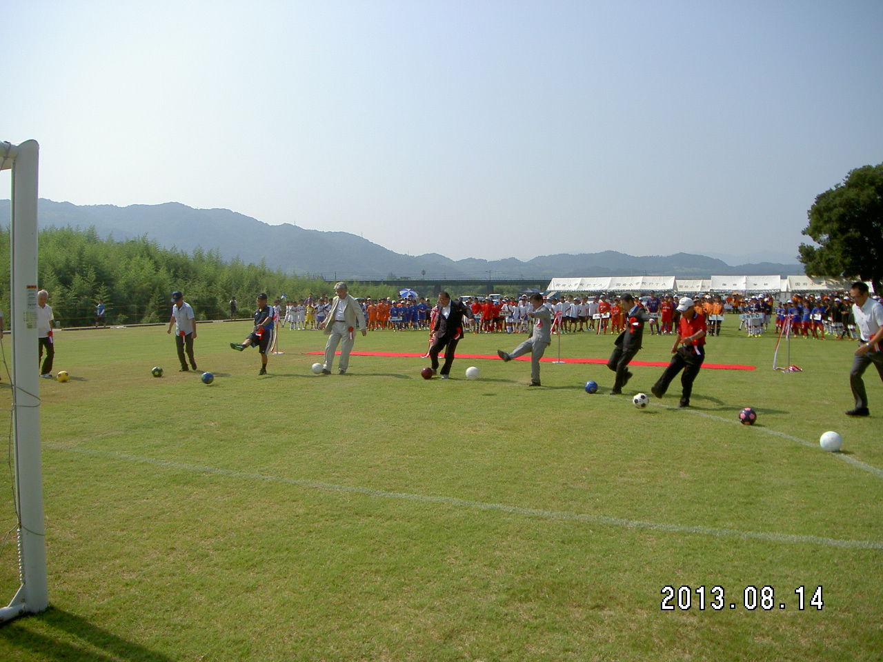 式典では、サッカー関係者の他、徳島市長、国会議員、県議会議員、市議会議員、学校関係者の方々が出席し、テープカットや始球式などが盛大に行なわれました。また、式典後には、炎天下にもかかわらず試合の熱戦が数多く展開されました。