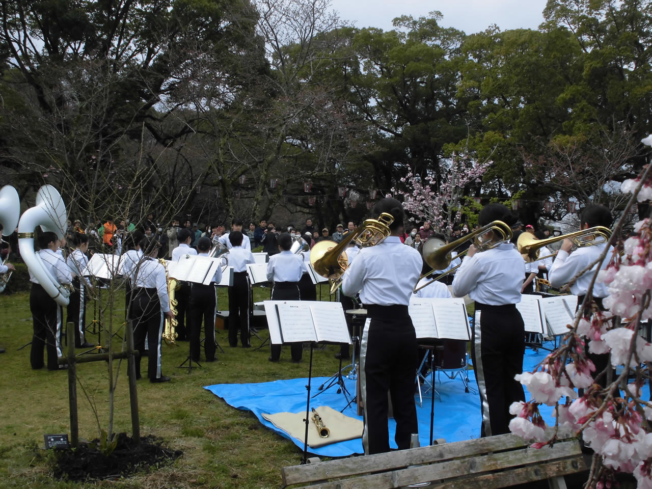 この、「春らんまんコンサート」は西部公園保勝会の方々により開催され、吹奏楽部のすばらしい演奏に約200人が酔いしれていました。