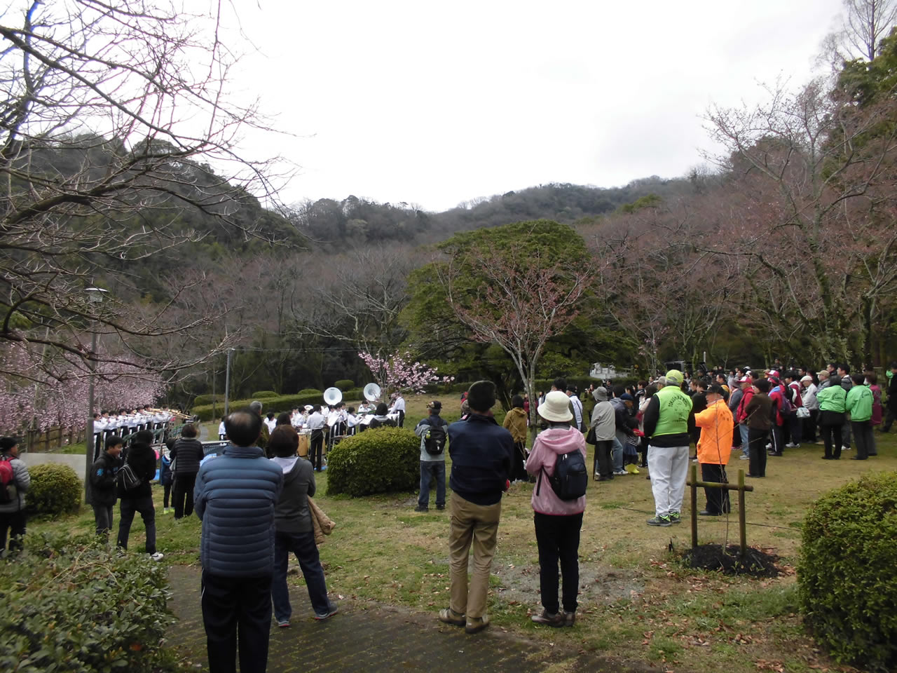 西部公園には、約550本のソメイヨシノが植えられており、「日本さくら名所100選」に指定されています。桜が咲くこの季節の中、西部公園で4月1日(日)10時30分より、加茂名中学校吹奏楽部30名の部員による「第8回春らんまんコンサート」が開催されました。