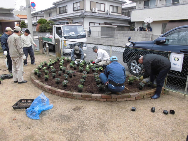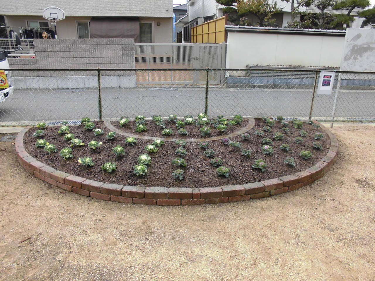 師走となりますと何かと慌ただしくなり、ポインセチアの花が目立つ季節になりました。11月29日に、庄町南公園の花壇において光陽台町内会の皆様と一緒に、紅白合わせて100本のハボタンを植えました。