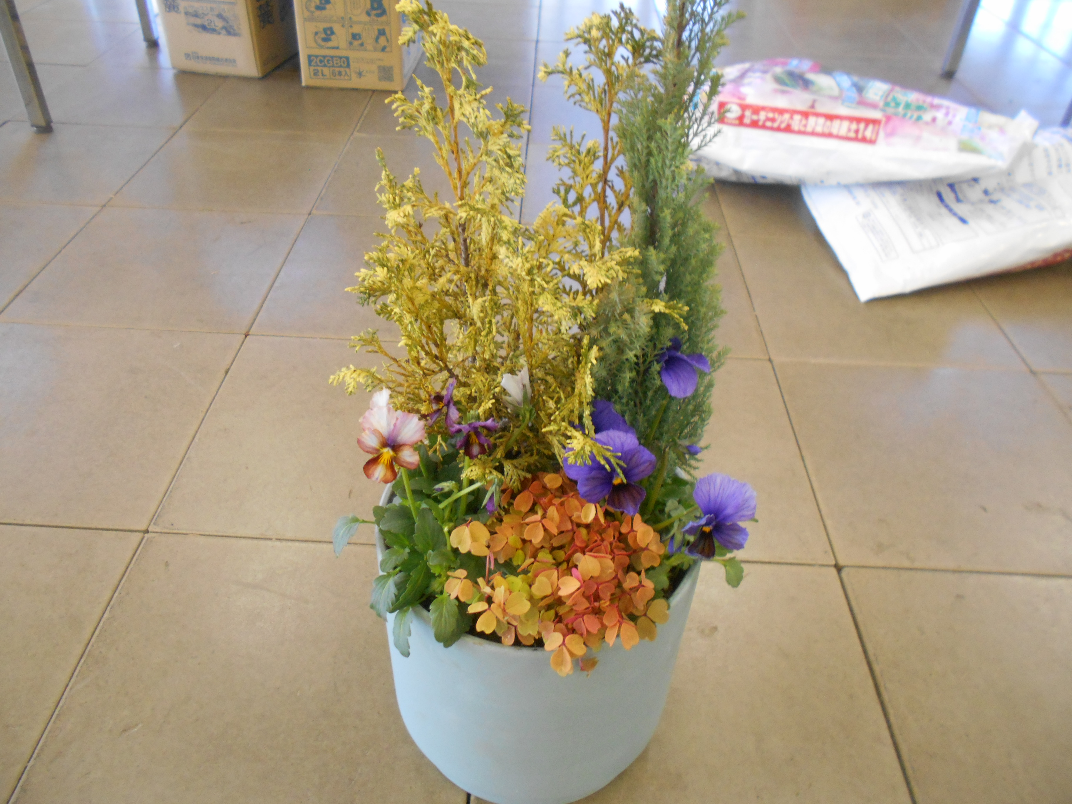 1回目 1月 7日 色を楽しむブーケタイプの寄せ植え