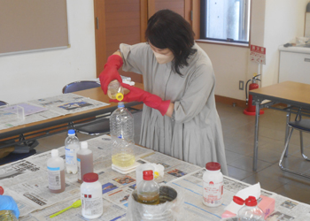 注記:せっけんの販売、配布等を行うには、薬事法などの規制があります。教室で作ったせっけんは、個人利用の範囲内でお使いください。