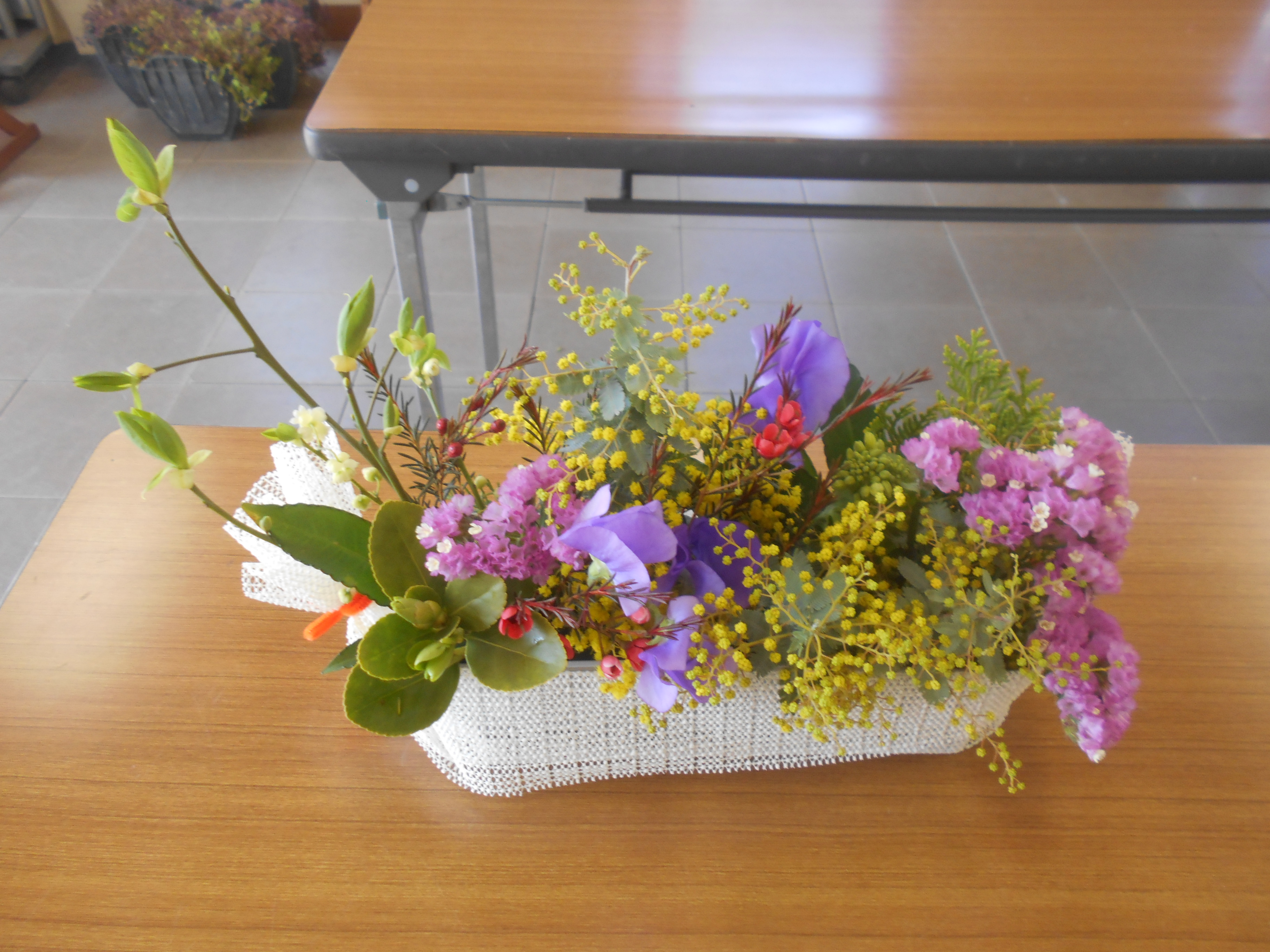 今回の教室のテーマは、「テーブル花」です。