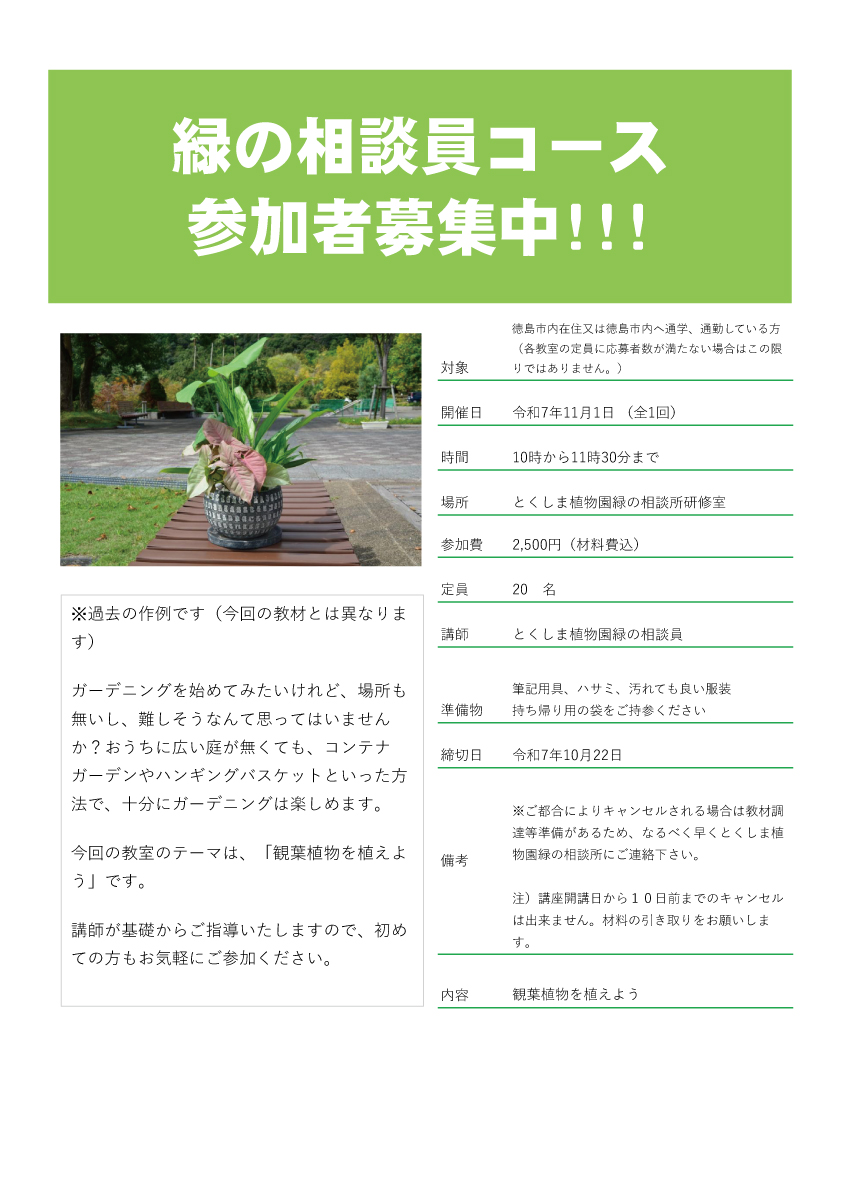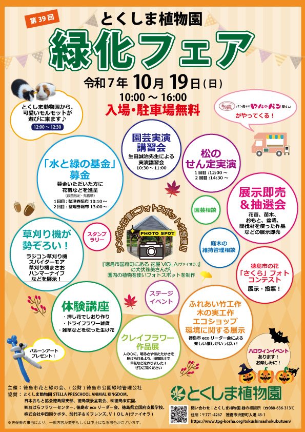 とくしま植物園では、令和7年10月19日(日)に「第39回緑化フェア」を開催いたします。 |