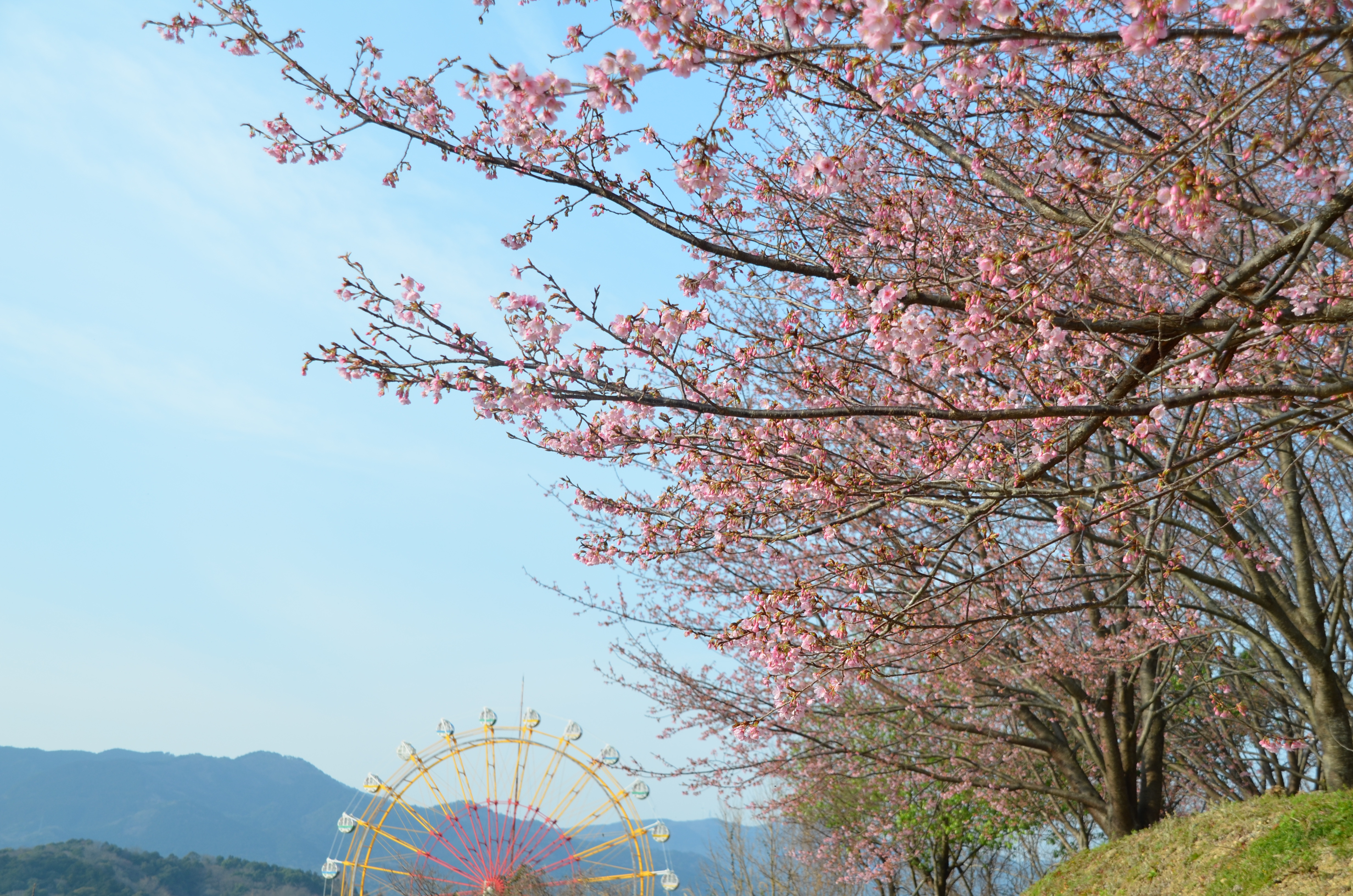 園内では、河津桜や蜂須賀桜が綺麗に咲いています。 |