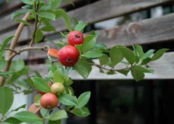5〜6月ごろに咲くはずの、ブラシノキに花が咲いています。長雨や酷暑など、異常気象のせいでしょうか。そして、グァバの実がたくさん実っているのを発見しました。気持ちの良い秋がやってきました。ぜひとくしま植物園へ散策にお越しください。