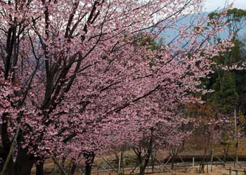 2月28日(日)のとくしま植物園のさくら開花情報です。あいにくの曇り空ですが、蜂須賀桜が満開でとっても綺麗です。