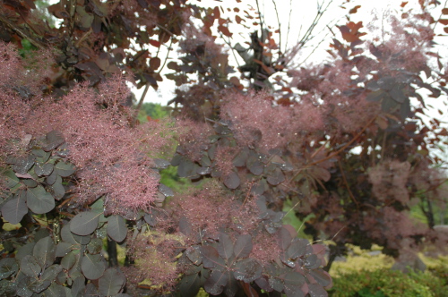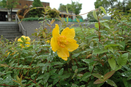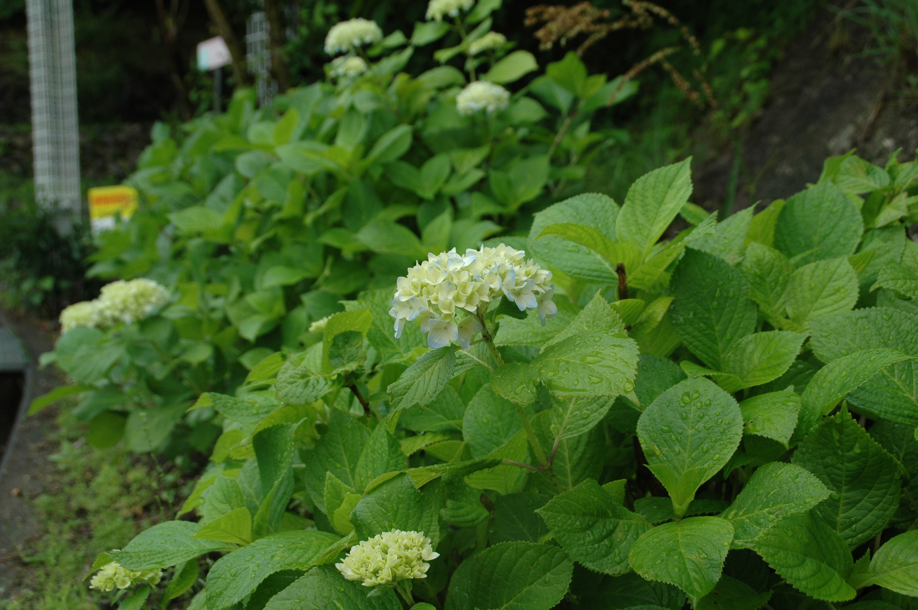 小雨の中植物園を散策していると、いろいろな花が咲いているのを見つけました。※写真はバイカウツギです。