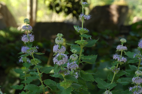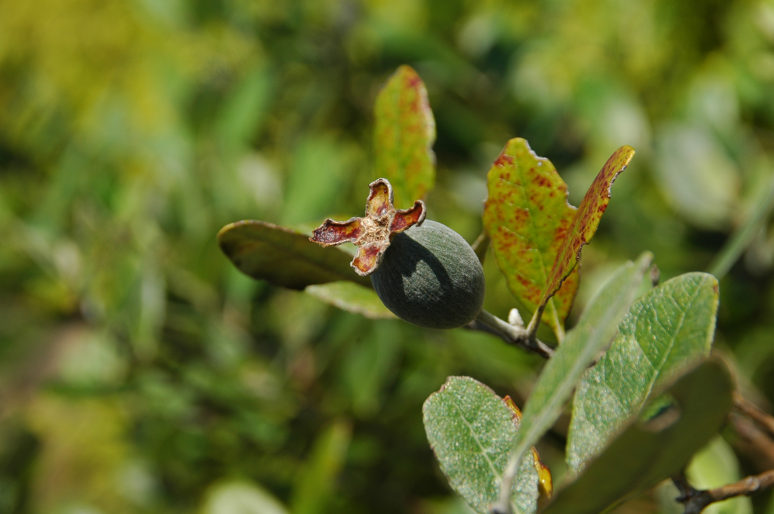 ロックガーデンで、秋明菊や段菊が咲いています。また、「パイナップルグァバ」の別名を持つ果樹、フェイジョアの実もできはじめていました。